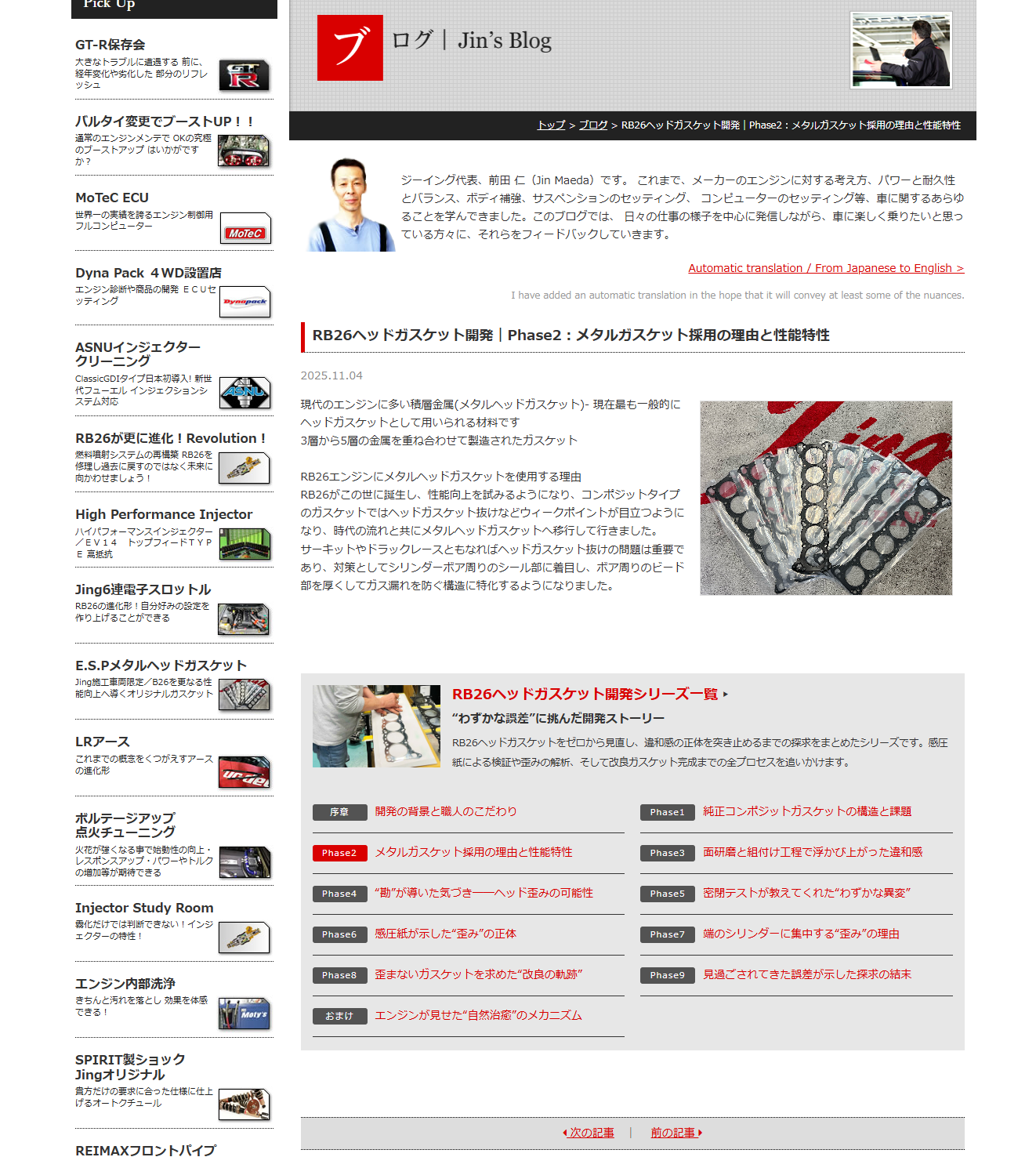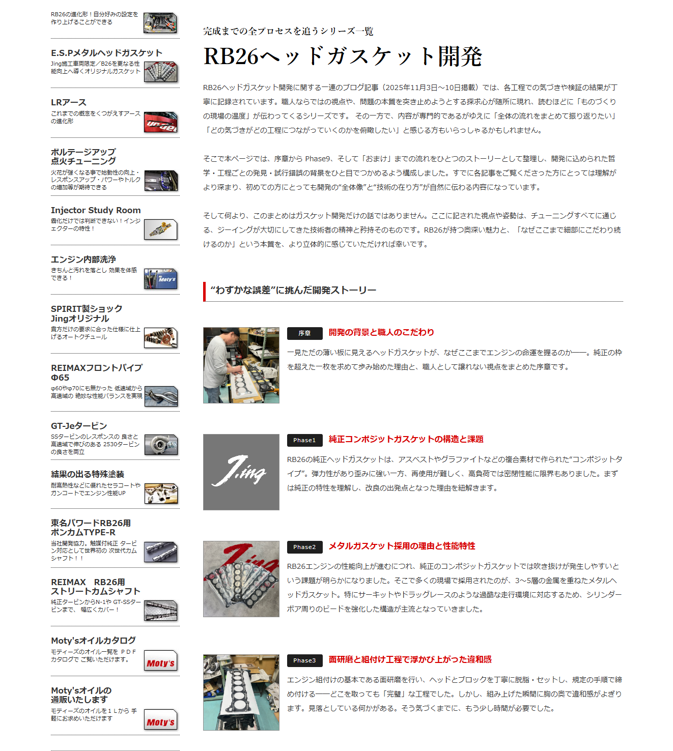 その中で、「RB26用ヘッドガスケット開発」に関する記事を集中的に発信されていた時期がありました。そこでご相談のうえ、一連の記事がシリーズであることを明確にし、内容の流れや価値がより伝わりやすくなるよう、まとめ記事を制作いたしました。下記は、その際の事例です。