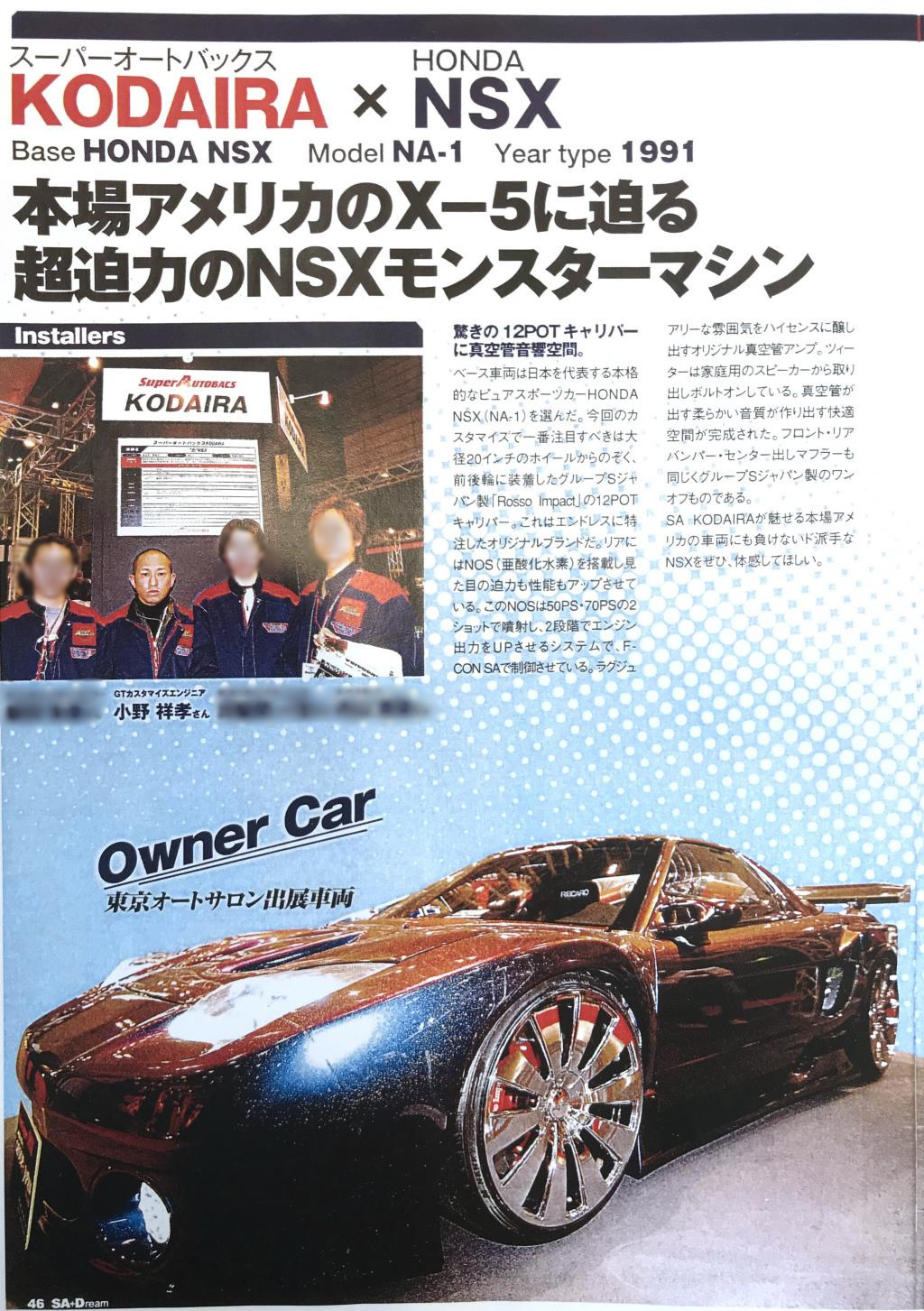 オートバックスインフィニティ在籍時にGTカスタマイズエンジニアとして手掛けた車両(NSX)が2006年東京オートサロンへ出展。特別賞を受賞し雑誌へ掲載されました。